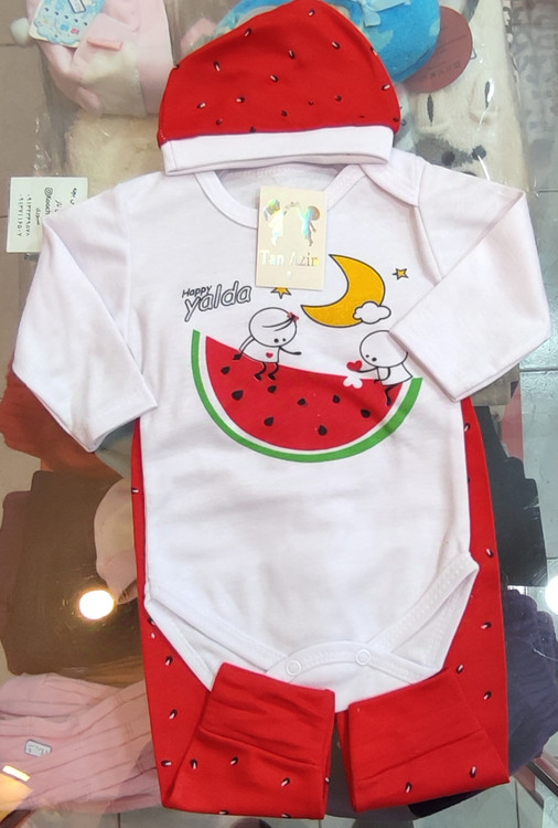 کار سه تیکه نخ پنبه و مناسب بچه های لاغر می باشد ،برای بچه های تپل و هیکل دار مناسب نیست سایز 1 برای صفر تا2ماه ،سایز2برای 2تا4ماه ،سایز3برای 4تا6ماه