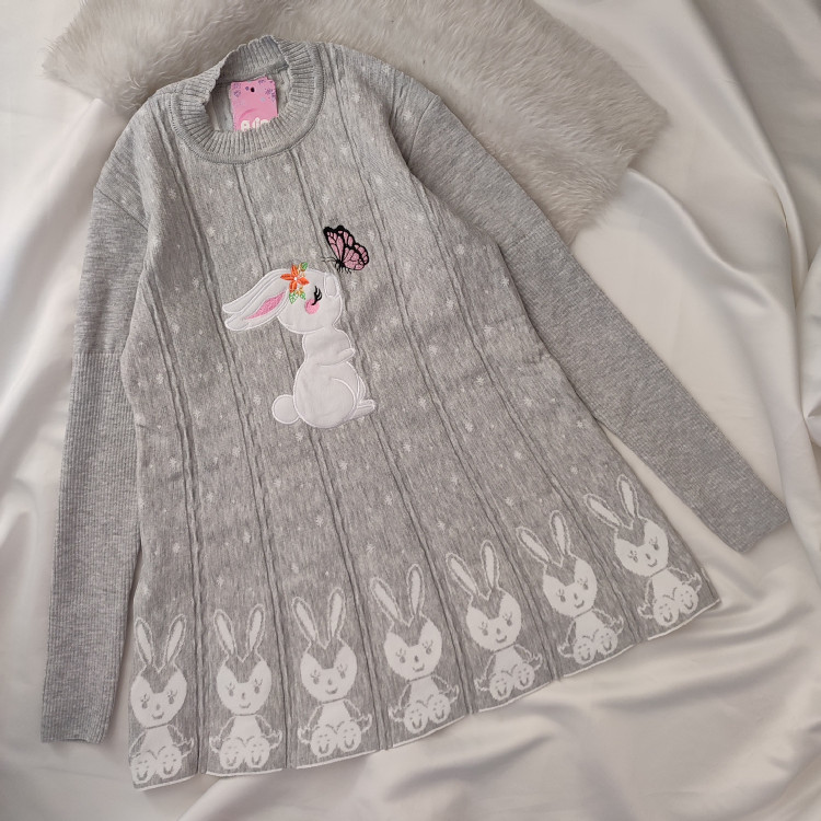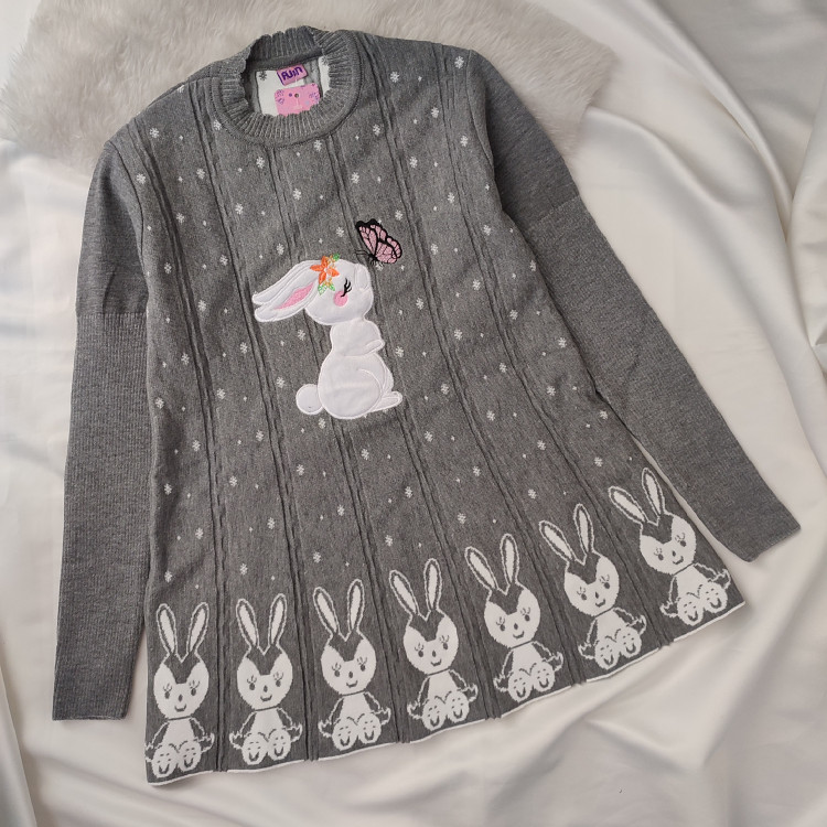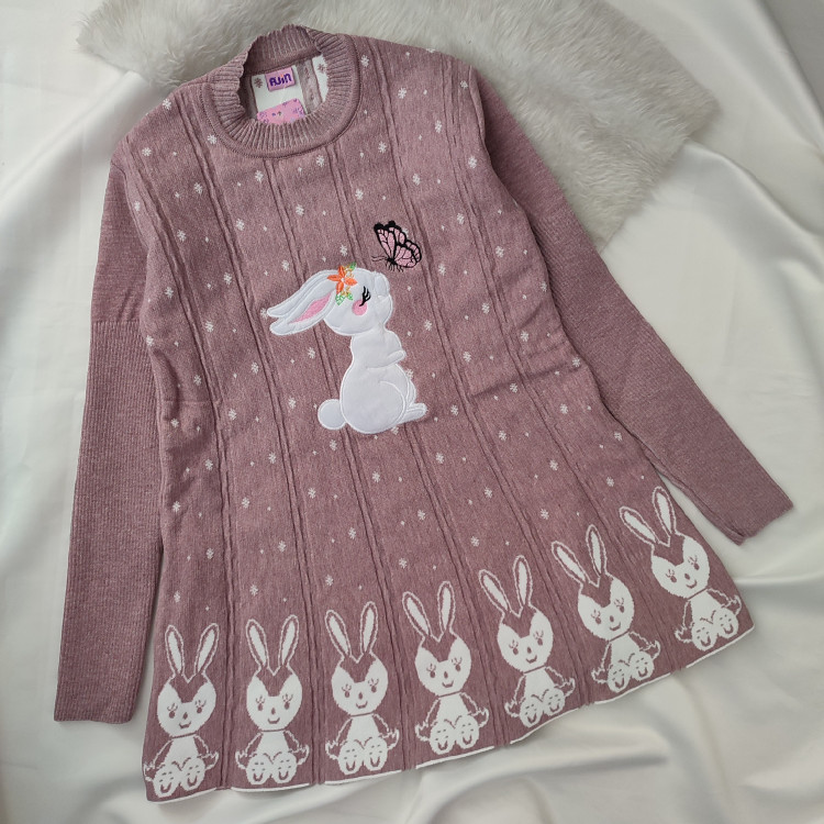 تونیک دخترانه بافت مدل خرگوش و پروانه